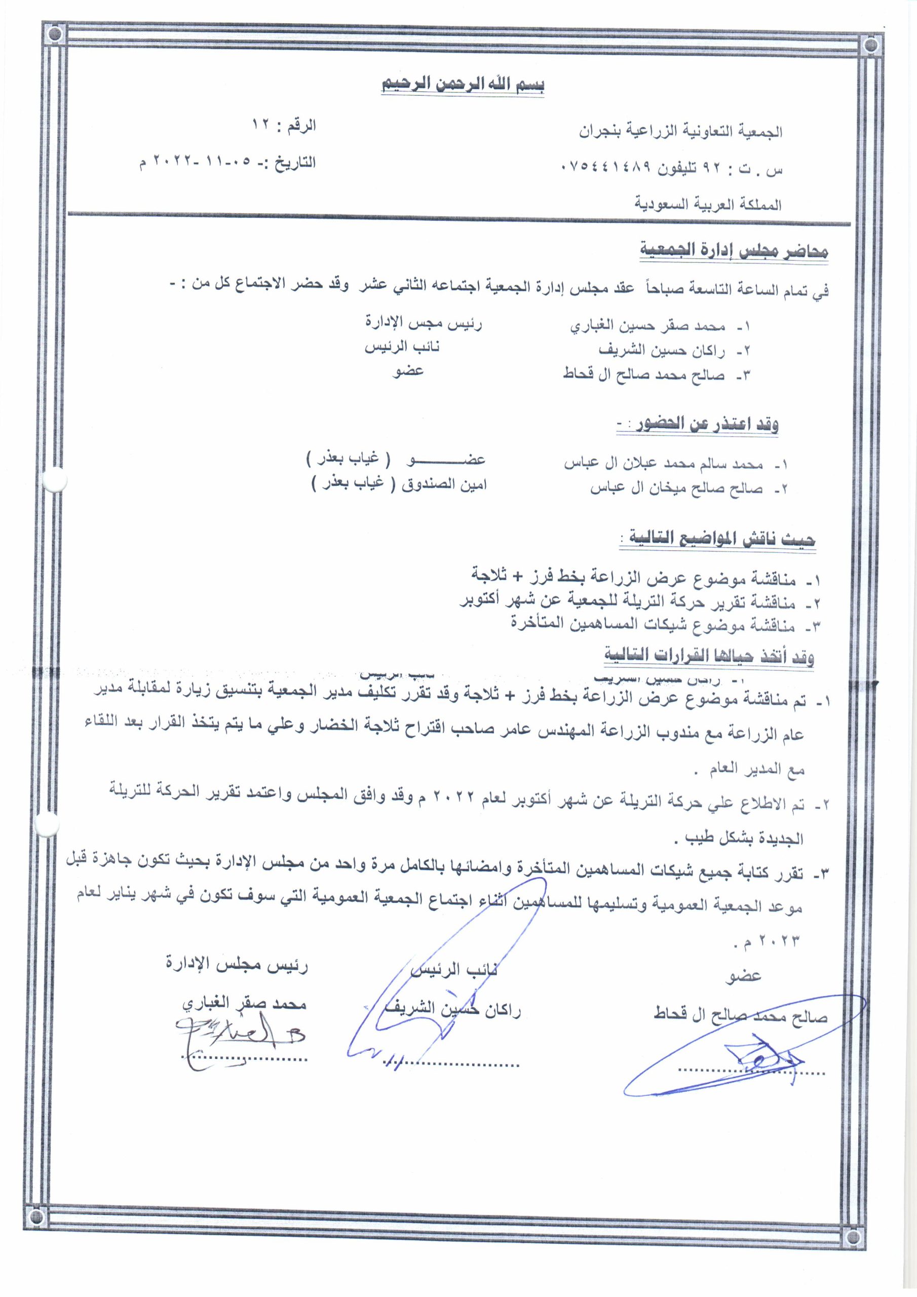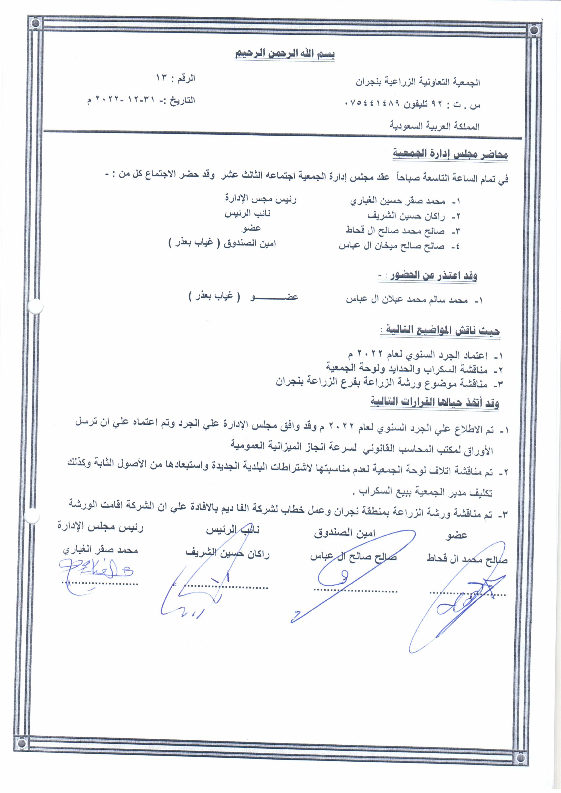 محضر اجتماع 31-12-2022