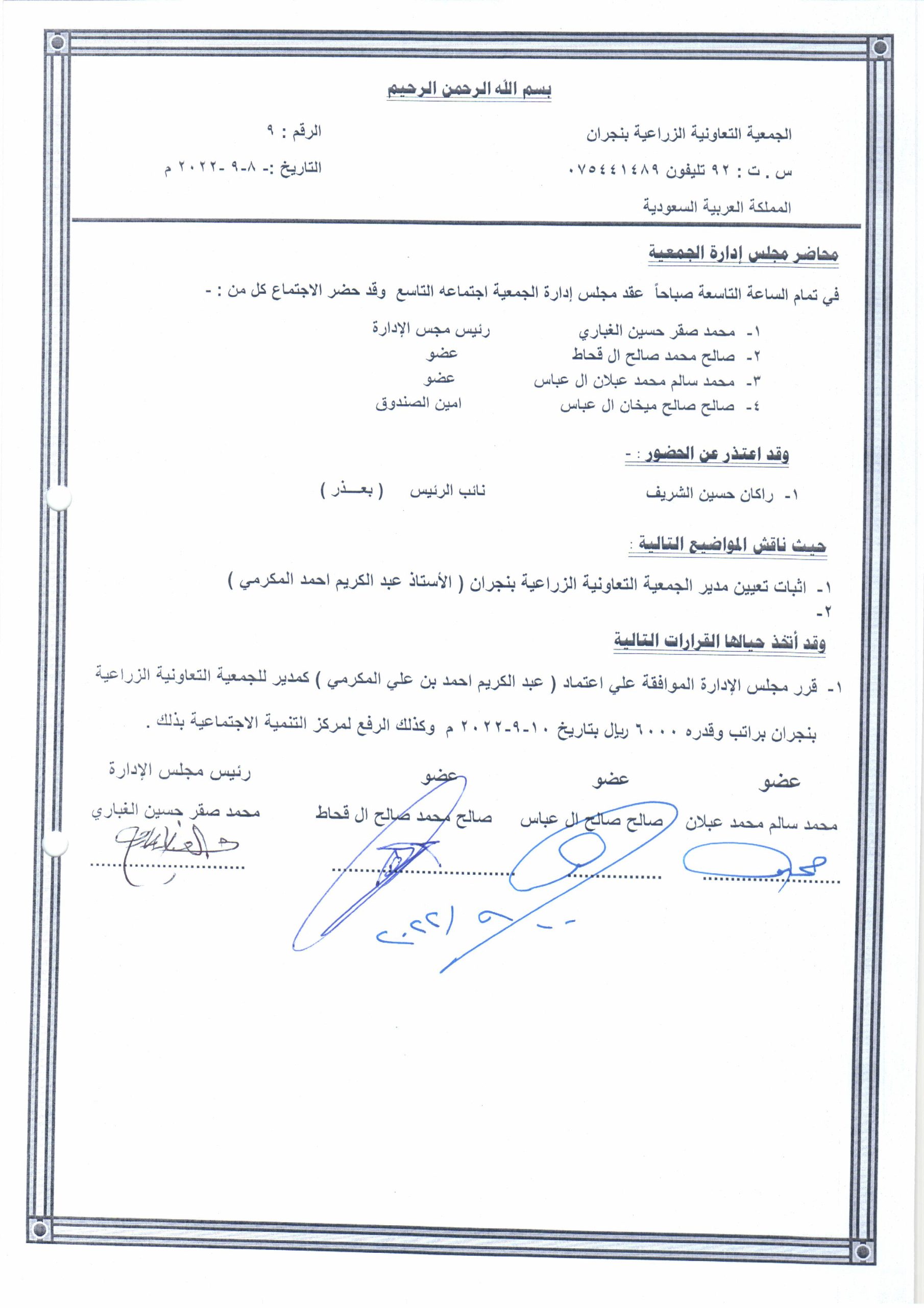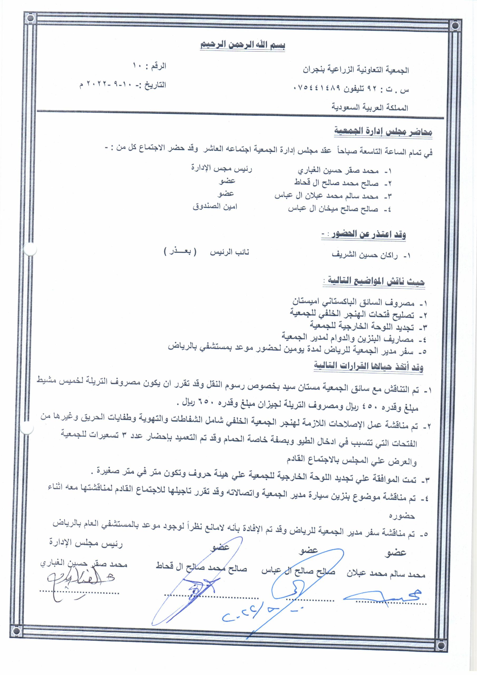 محضر اجتماع 10-09-2022
