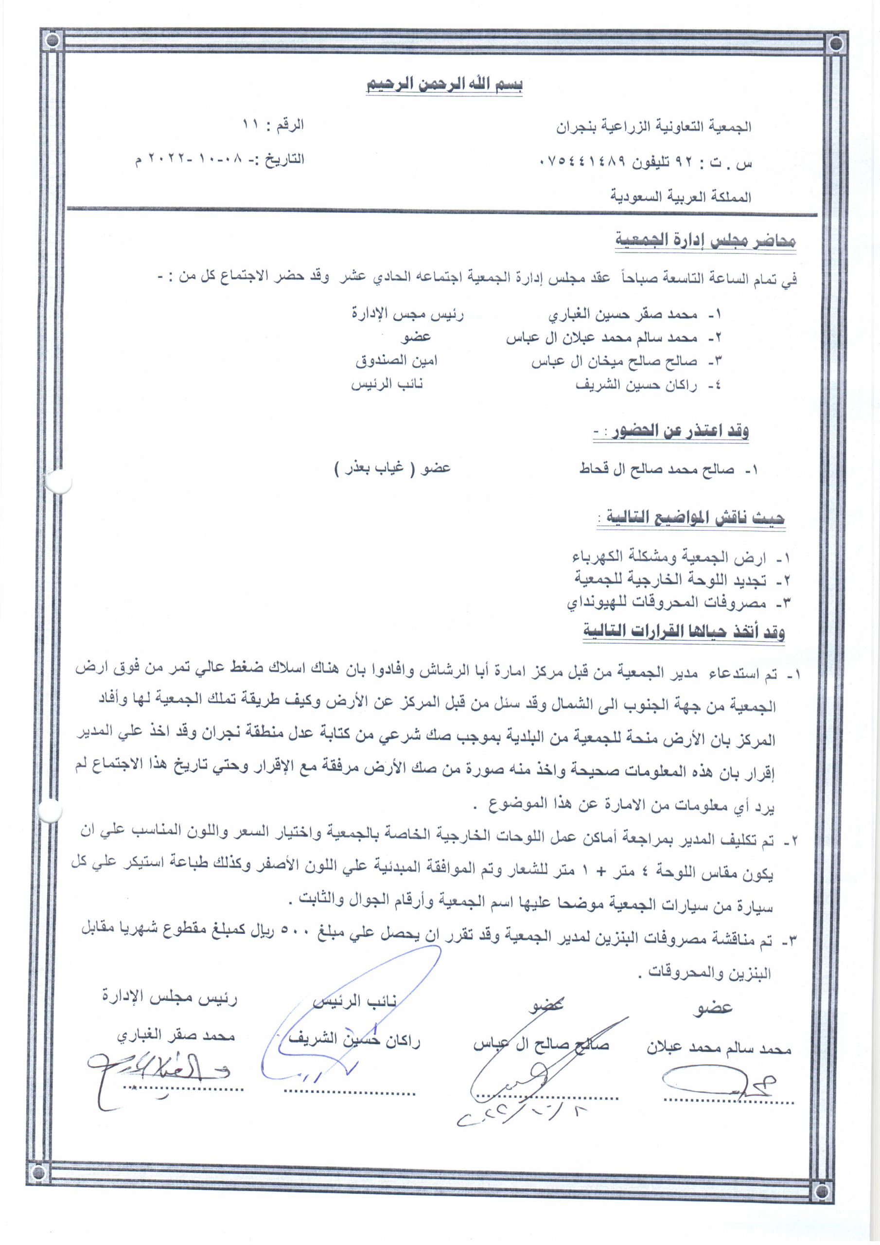 محضر اجتماع 05-11-2022