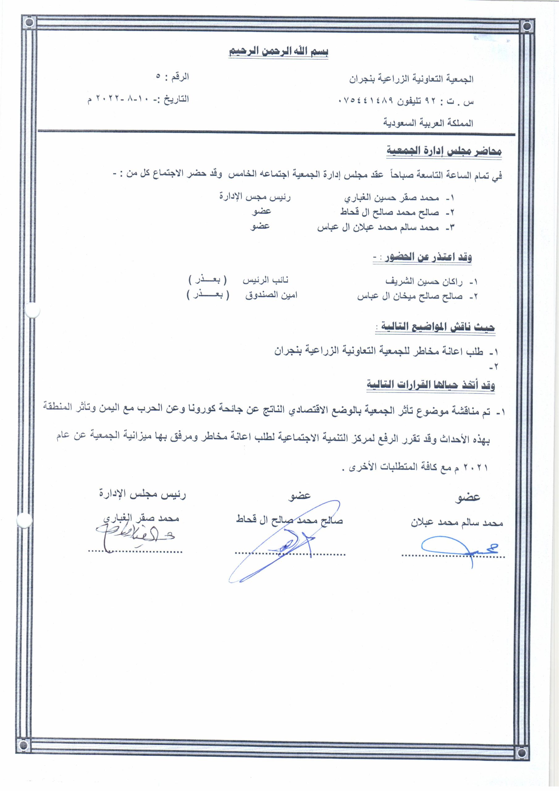 محضر اجتماع 10-08-2022